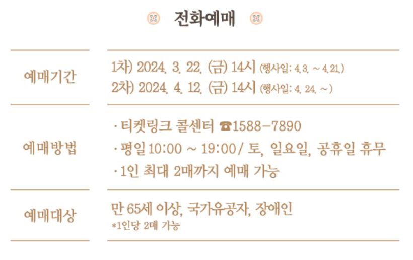 꼭 그 전에 인터넷과 전화 예매를 성공하셔서 가시길 바랍니다.
