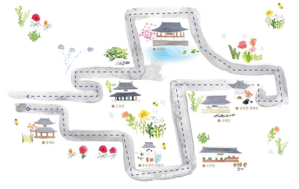마지막으로 교태전, 집경당·함화당, 경회루, 근정전 산책으로 코스가 진행됩니다.